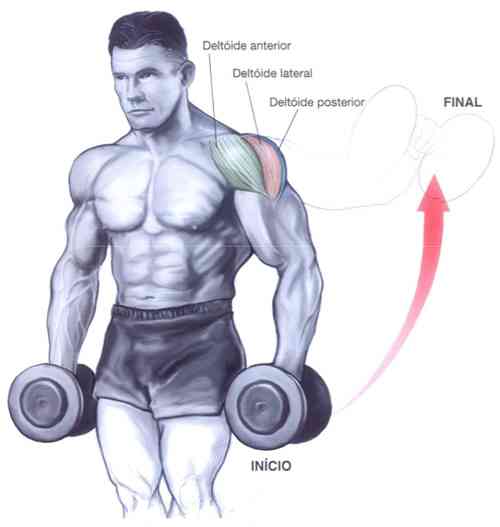 FASE CONCÊNTRICA: Expirar e ao mesmo tempo executar abdução simultânea dos braços, cotovelos quase em extensão, subida até sensivelmente a altura dos olhos.
